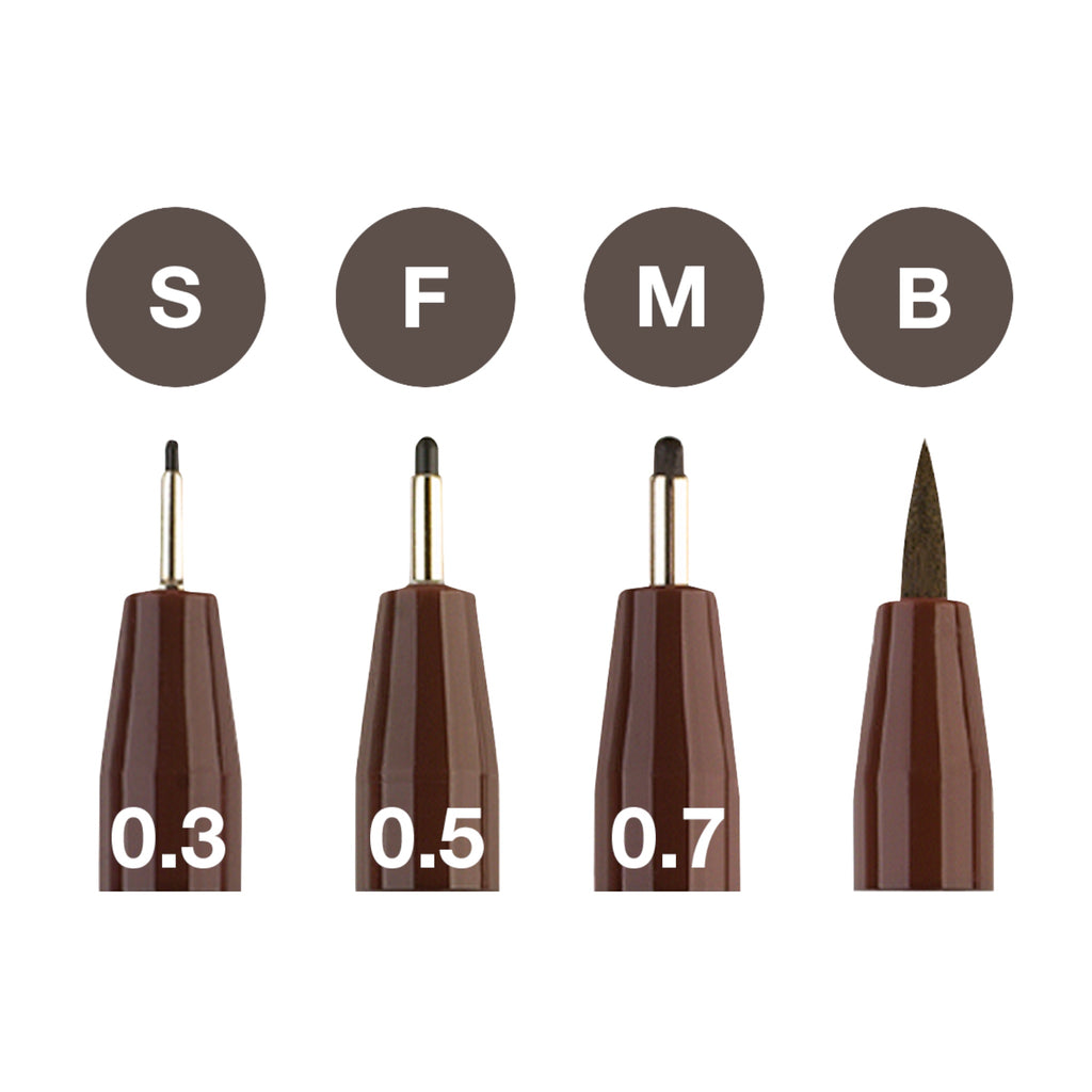 - 4 trazos por estuche: S = 0,3 mm, F = 0,5 mm, M = 0,7 mm, B = punta pincel