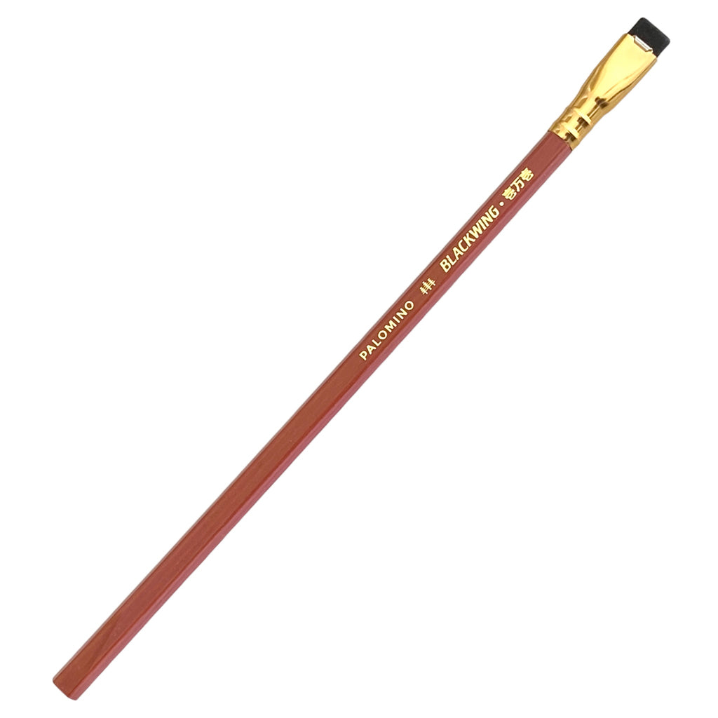 El lápiz presenta un barril manchado de rojo, una huella de oro y una forma única de lápiz de cinco caras "Gōkaku".