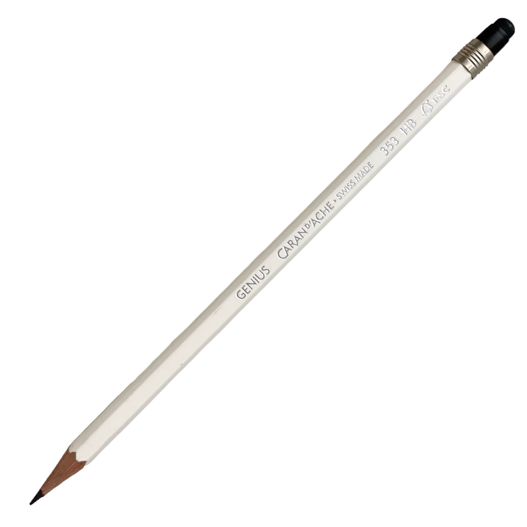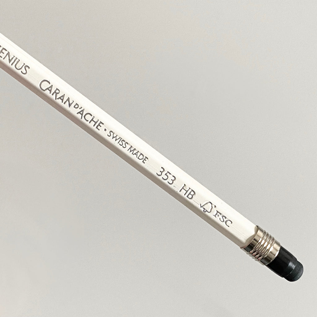 Lápiz Genius Blanco 353 HB con puntero de goma. Caran D´Ache