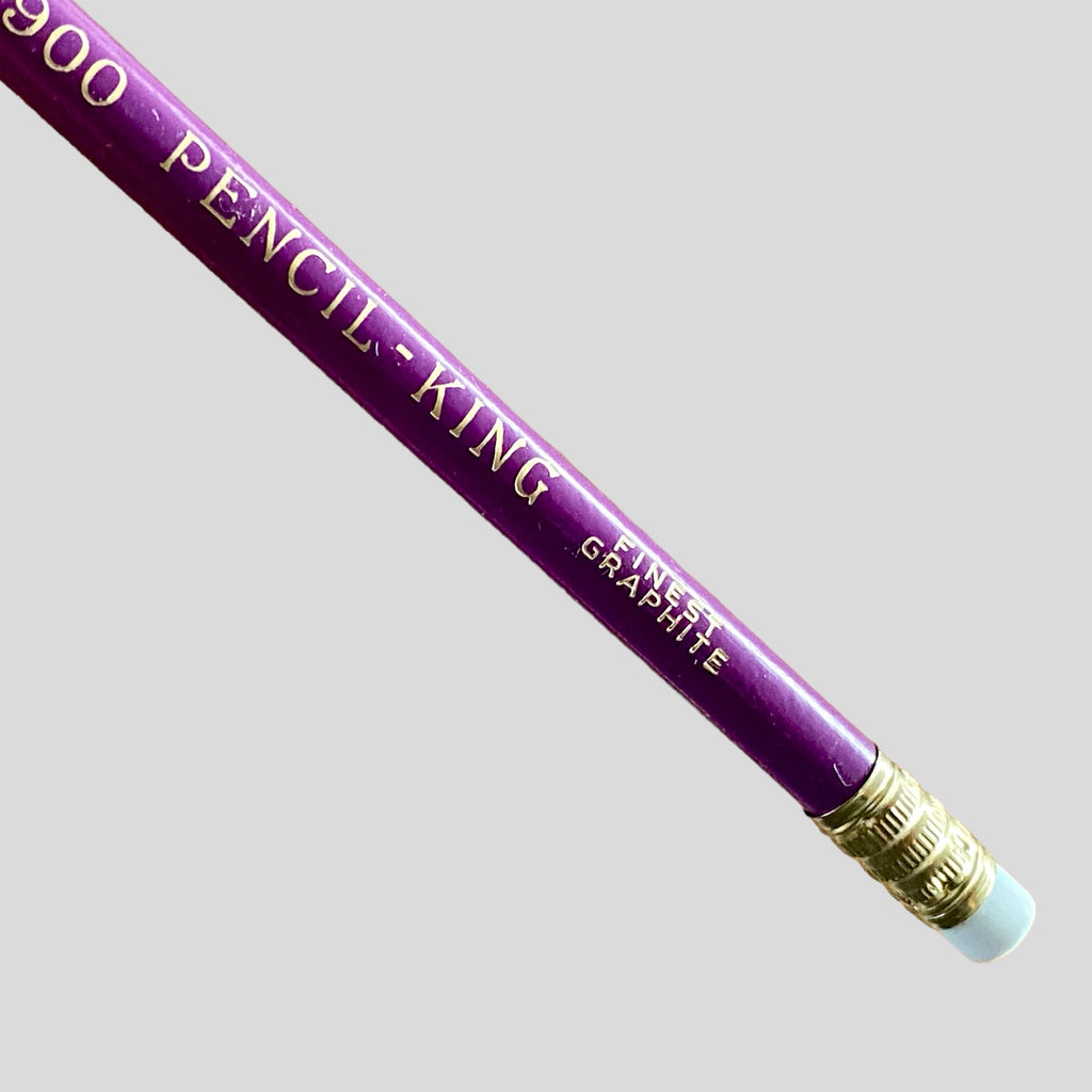 El lápiz King nos transporta al apogeo de los lápices impresos en acero. Este histórico troquel de acero provino de Greg and Sons de Cincinnati y data de finales de la década de 1940.