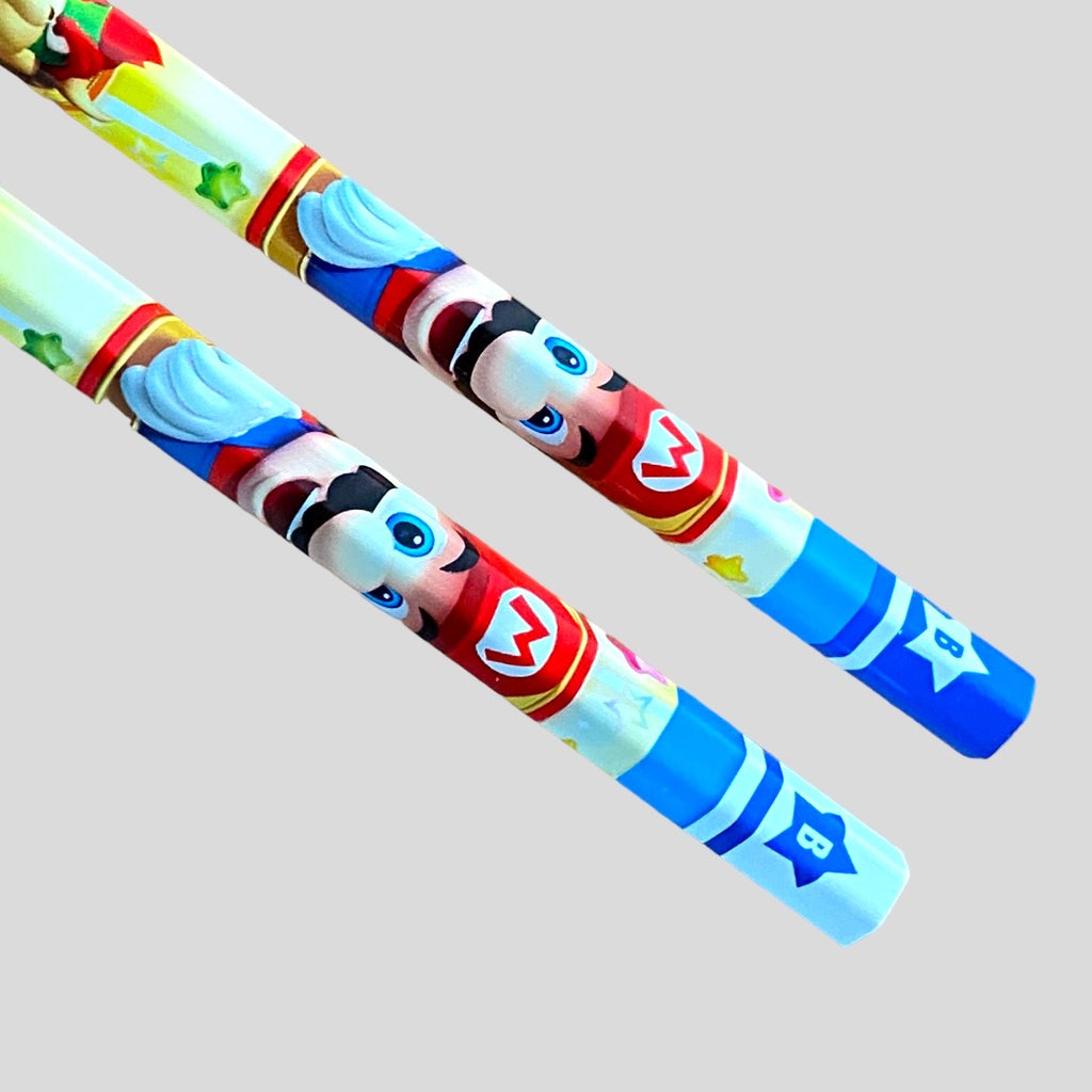 Estos lápices hexagonales de alta calidad están diseñados para durar. ¡Disfruta de la diversión de dibujar con los personajes del videojuego de Nintendo Super Mario que hizo historia! ¡Regala estos dos lápices SMS4. B a tu mejor jugador!