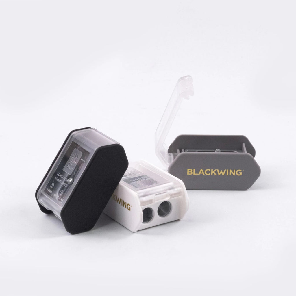 El nuevo sacapuntas de punta larga de dos pasos mejorado sigue presentando el sistema de afilado de dos pasos dentro de un paquete nuevo y elegante.